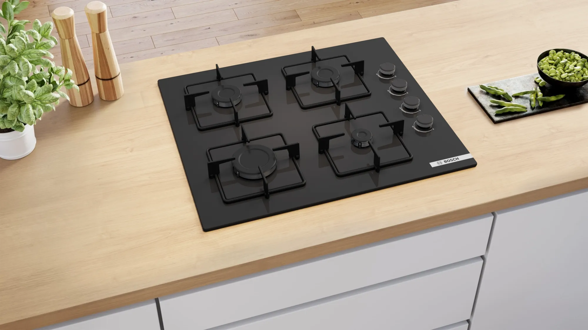 BOSCH POP6C6P30O Serie 4 Gazlı Ankastre Ocak 60 cm Siyah