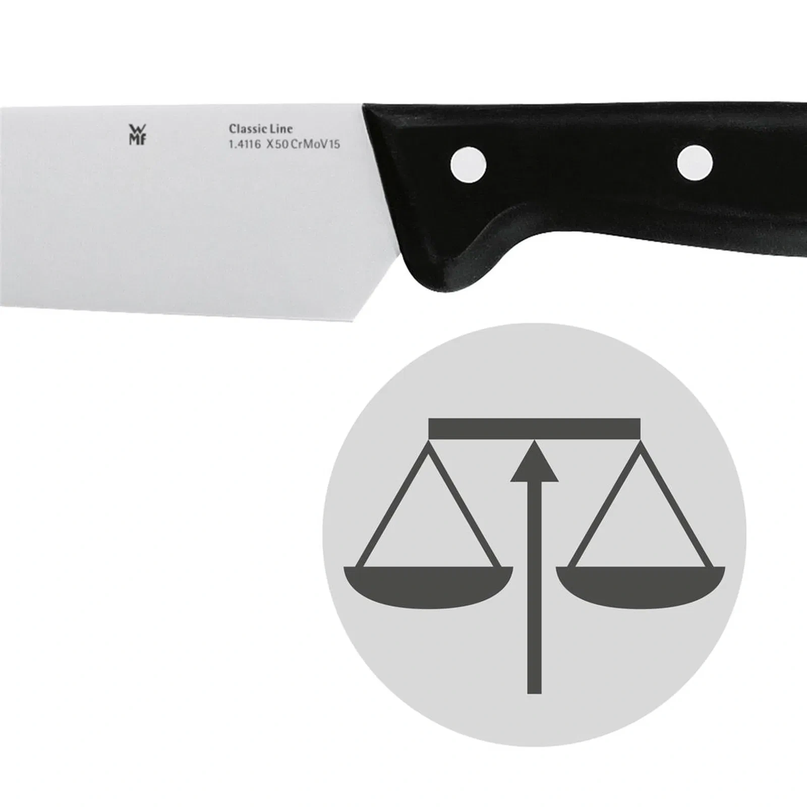 Perçinli sapların zamana meydan okuyan şıklığı ile oldukça dengeli ergonomik tasarım, kesme ve doğrama işlemlerini kolayca gerçekleştirmek için ideal olan rahat ve doğal bir tutuş sağlar.