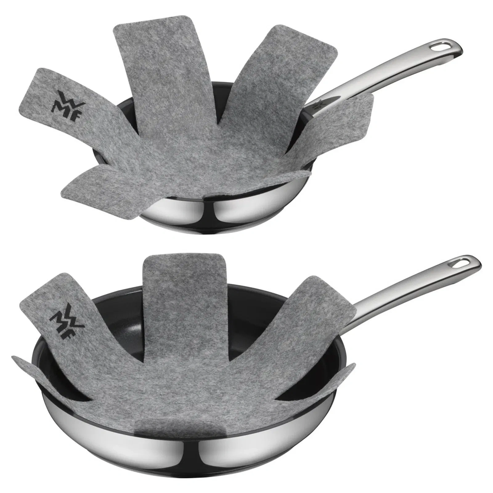 Zahmetsiz saklama ve rahatlık ile gönül rahatlığı: WMF Tava Koruyucu, pişirme kaplarını ve yapışmaz kaplamaları çizilmelere ve eziklere karşı koruyan, rahat saklama için basit bir çözümdür. WMF kalite standartlarında azami özenle tasarlanmış yüksek kaliteli yumuşak keçe, tüm favori tencere ve tavalarınızın tamamen korunmasını sağlarken yerden tasarruf sağlayan saklama ve tam rahatlık sunar. Tüm saklama ihtiyaçlarınız için vazgeçilmez olacağı kesin olan çok yönlü 38 cm çapındaki tencere ve tavalar, tam koruma için ister düz, ister yanları kıvrık olsun, tüm standart tencere ve tavalara uygundur. Bu kullanışlı 2 parçalı set, günden güne kolay koruma sağlar.
